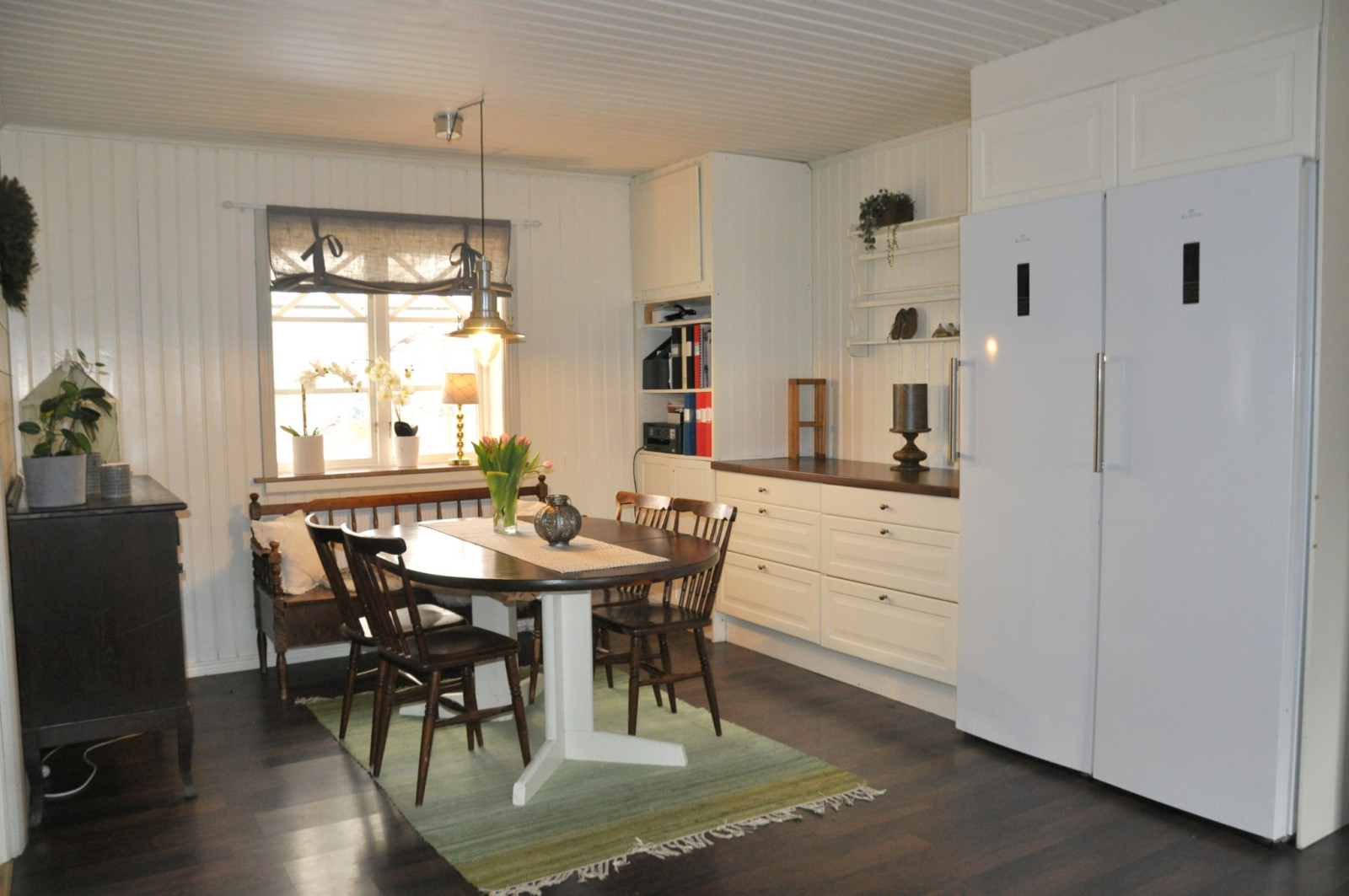 Golvvärme i större delen av kök/matplats, hall och groventré.