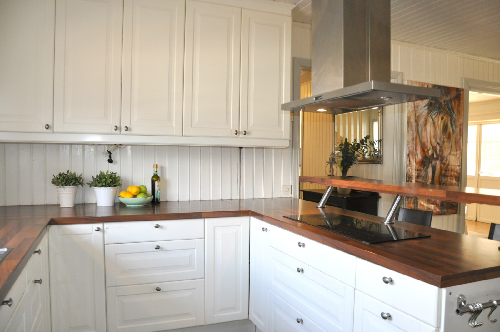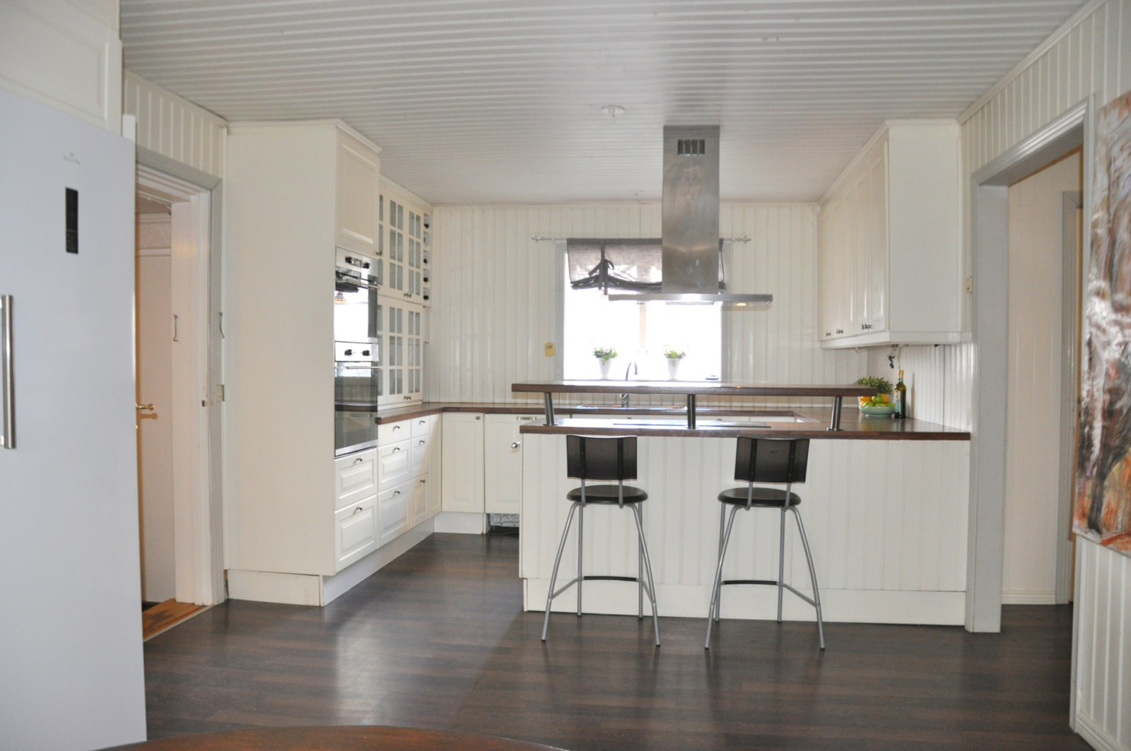 Induktionshäll, fläktkåpa, kylskåp (2020), frys (2020), integrerad diskmaskin. Köket renoverades och byggdes om 2008.