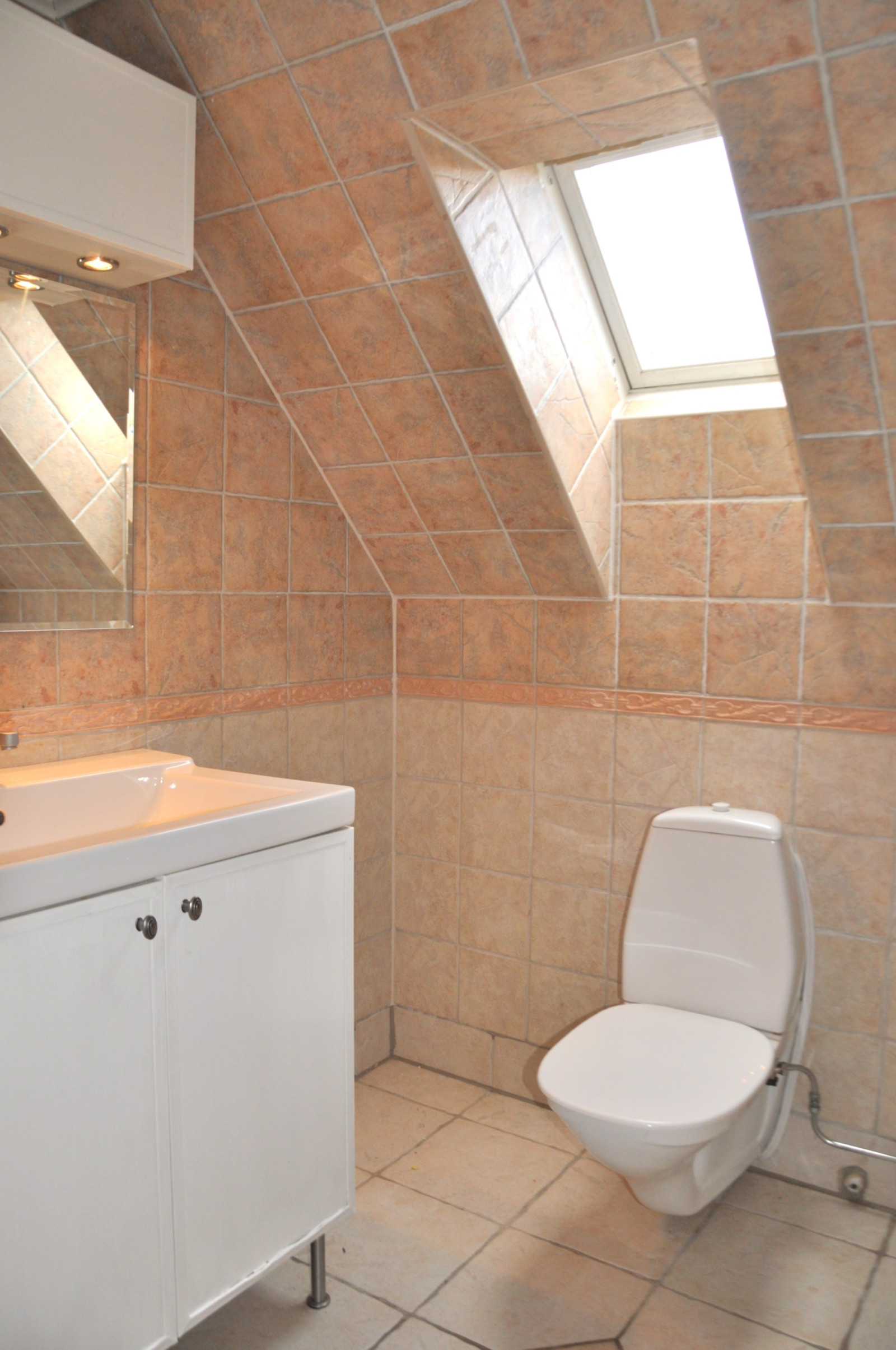 Badrummet på ovanvåningen renoverades 2003.Bilplats