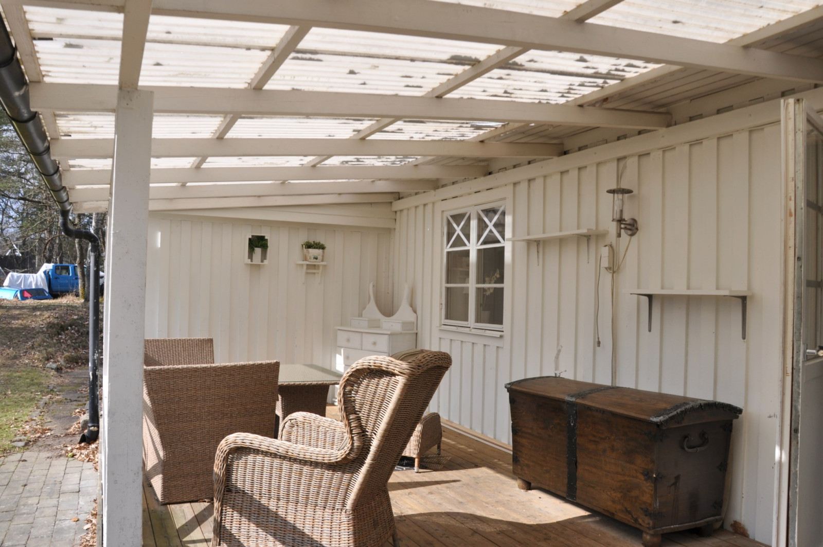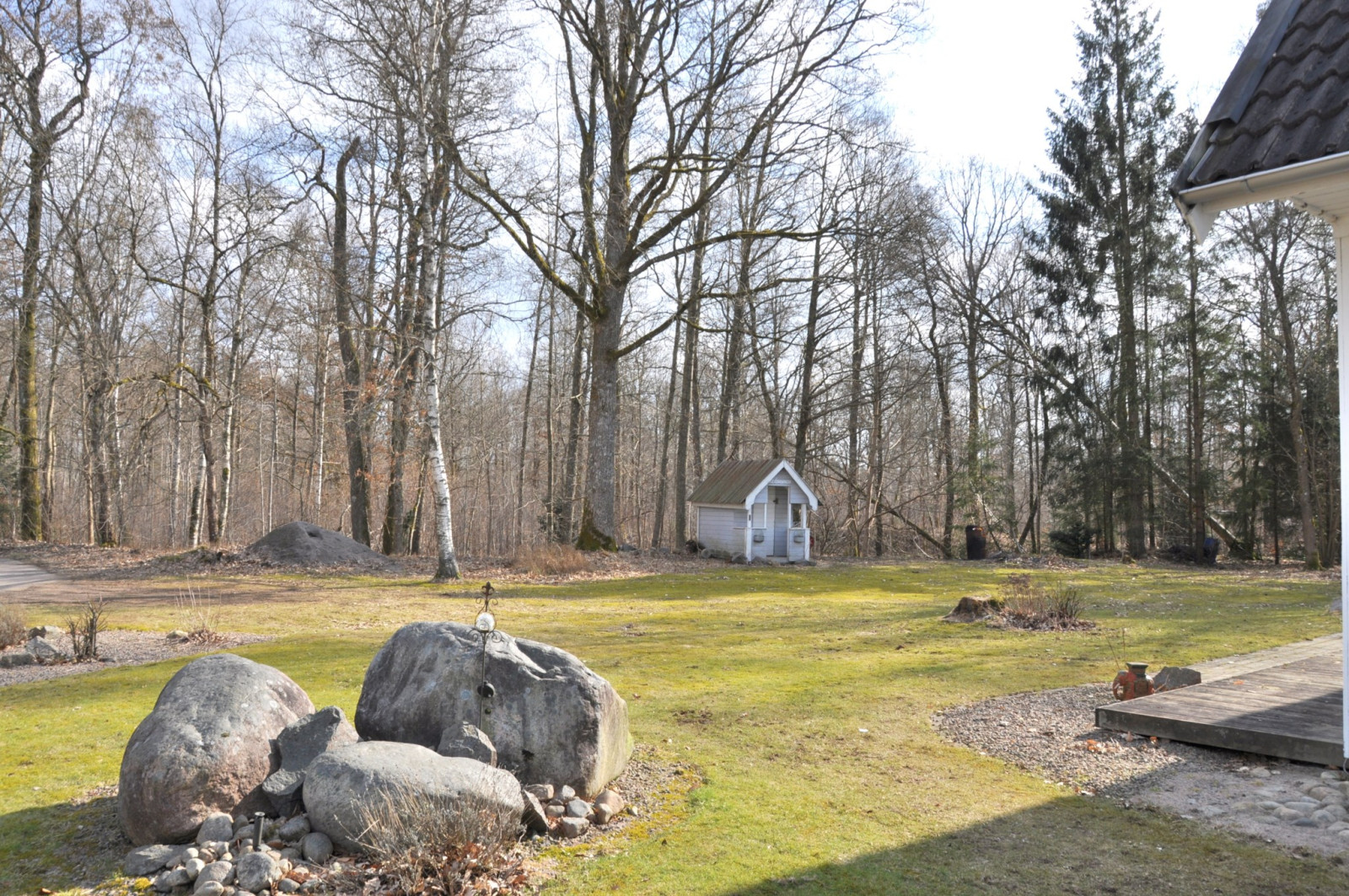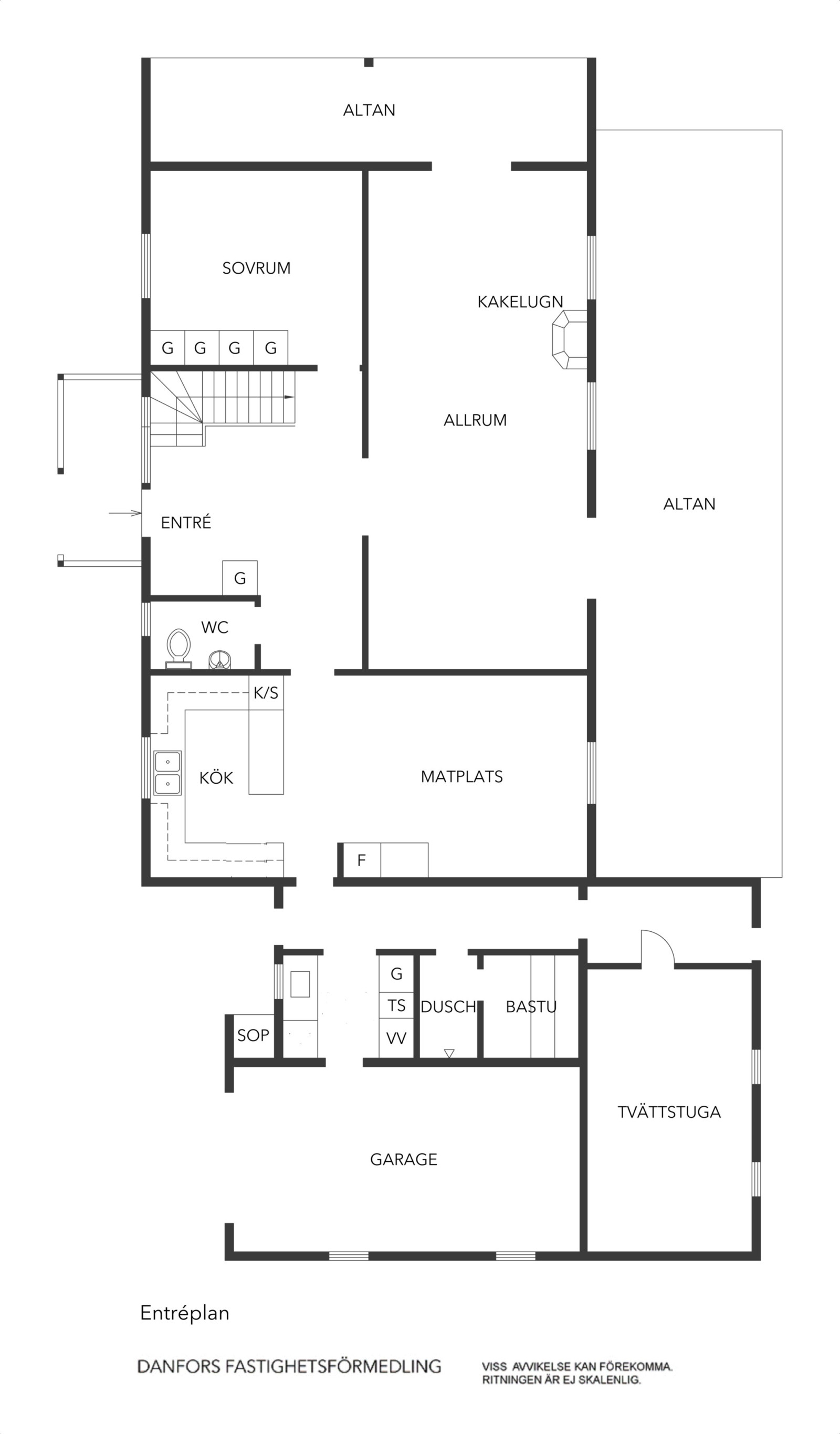 Vidare genom köket nås en separat avdelning med groventré, tvättstuga samt dusch och möjlighet att inreda bastu. Härifrån finns också utgång till garaget.
