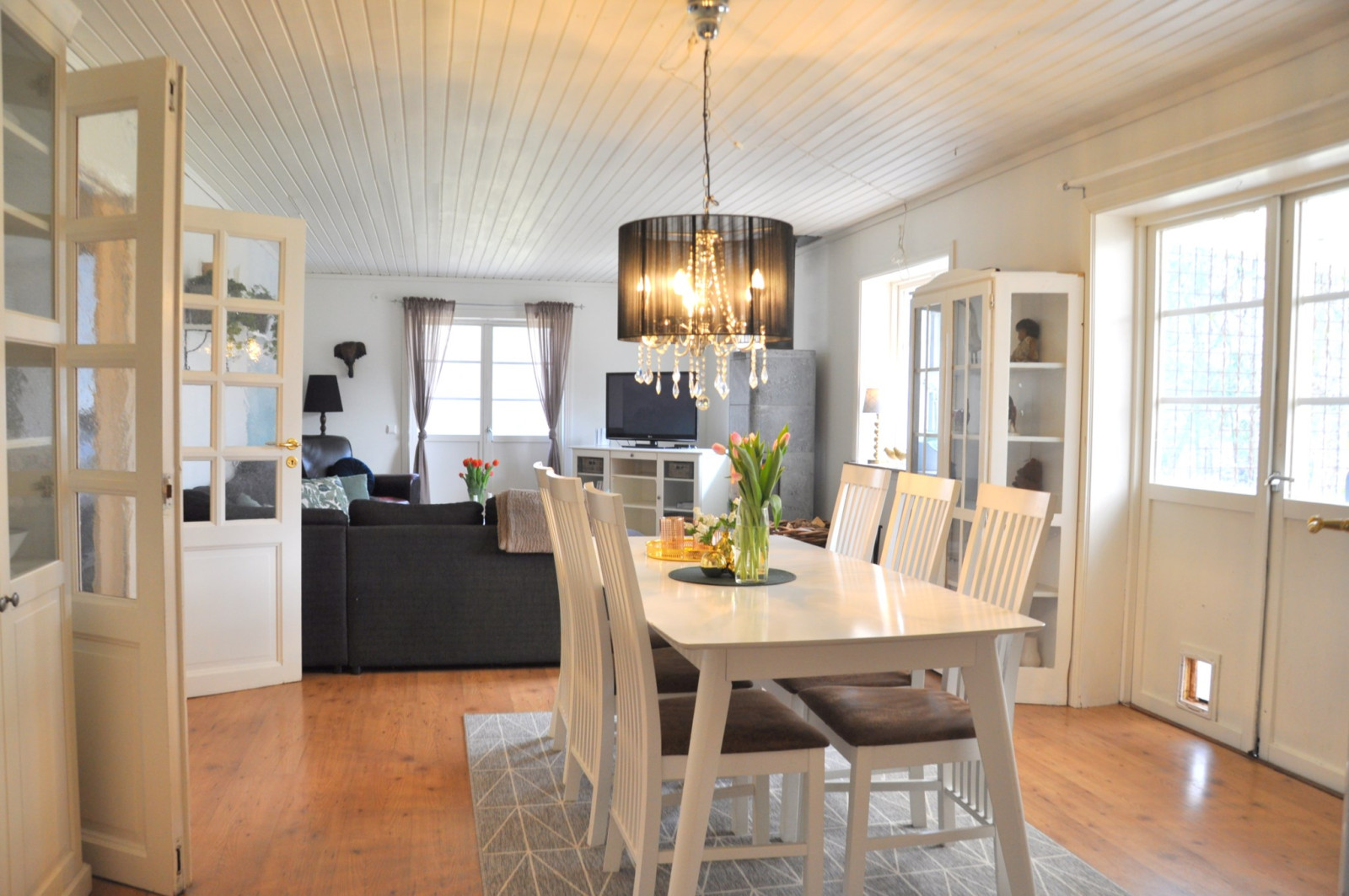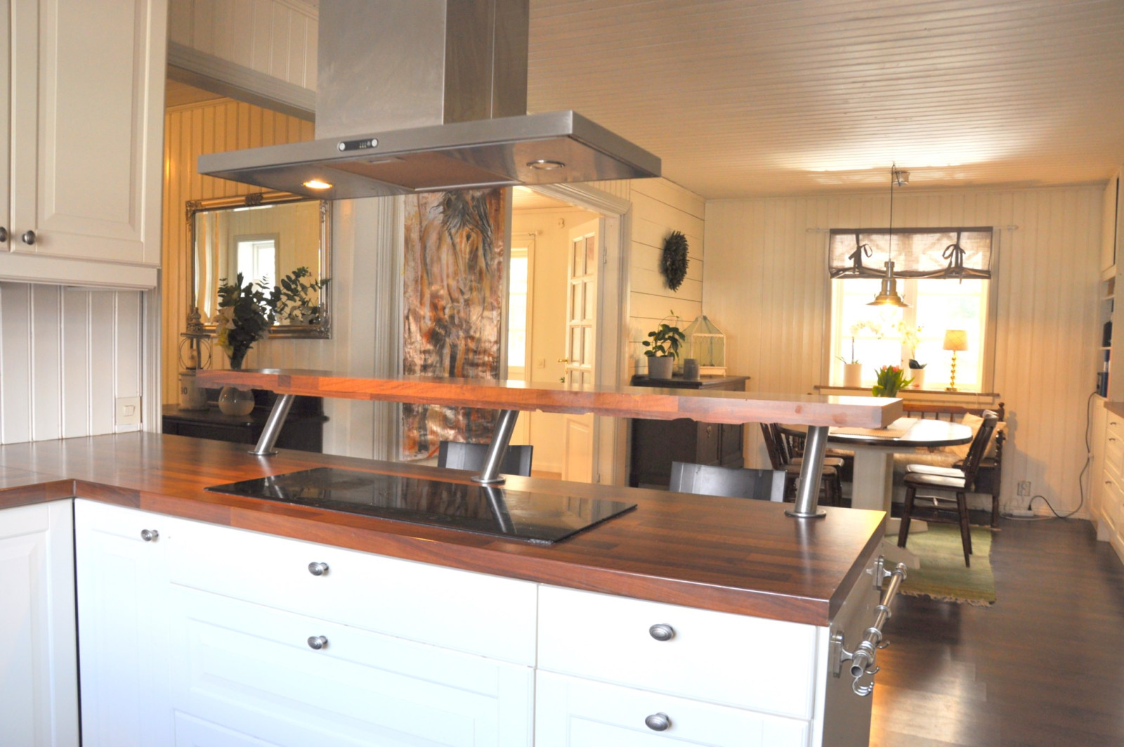 Till höger från hallen nås köket och matplatsen som även nås från sällskapsrummet.