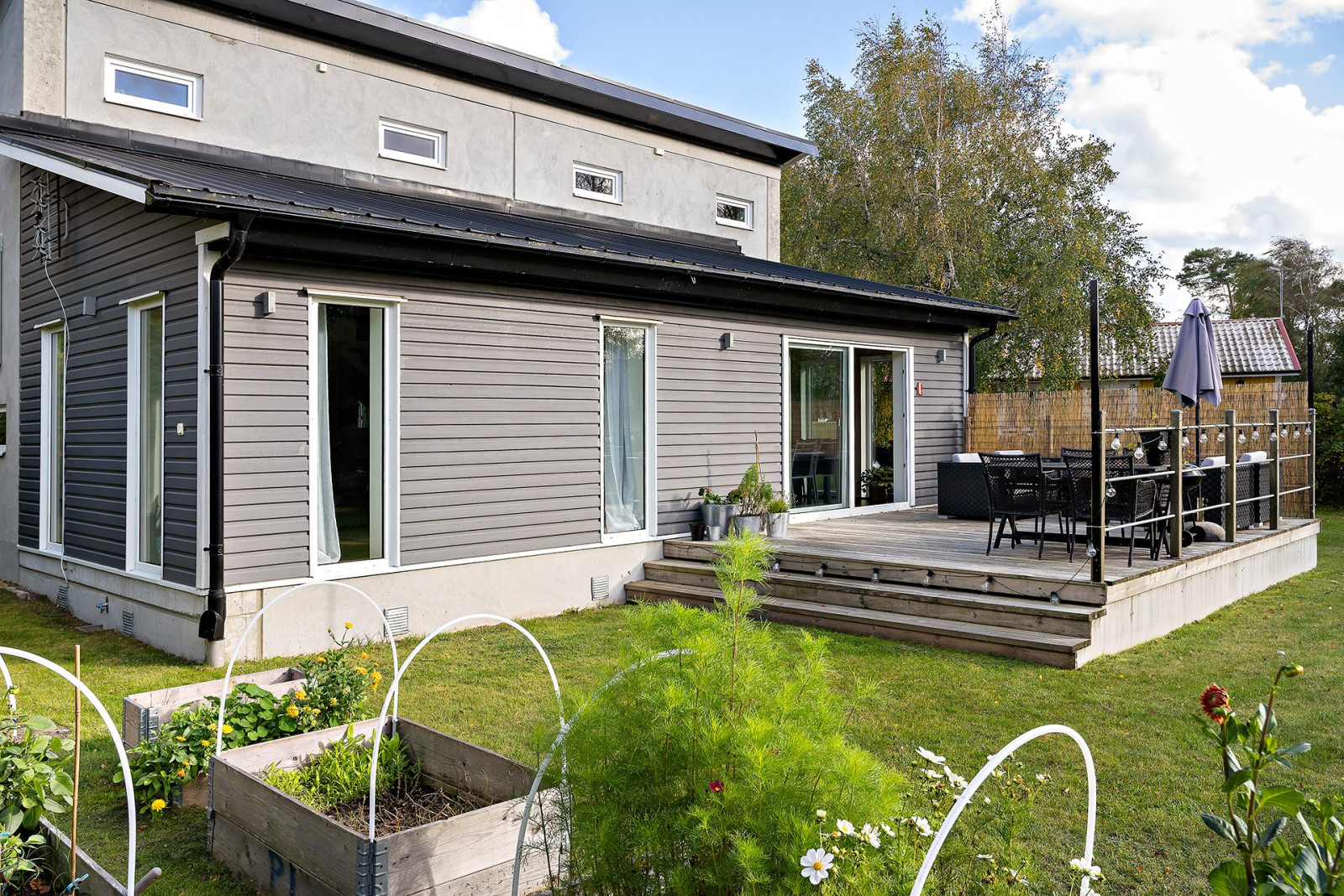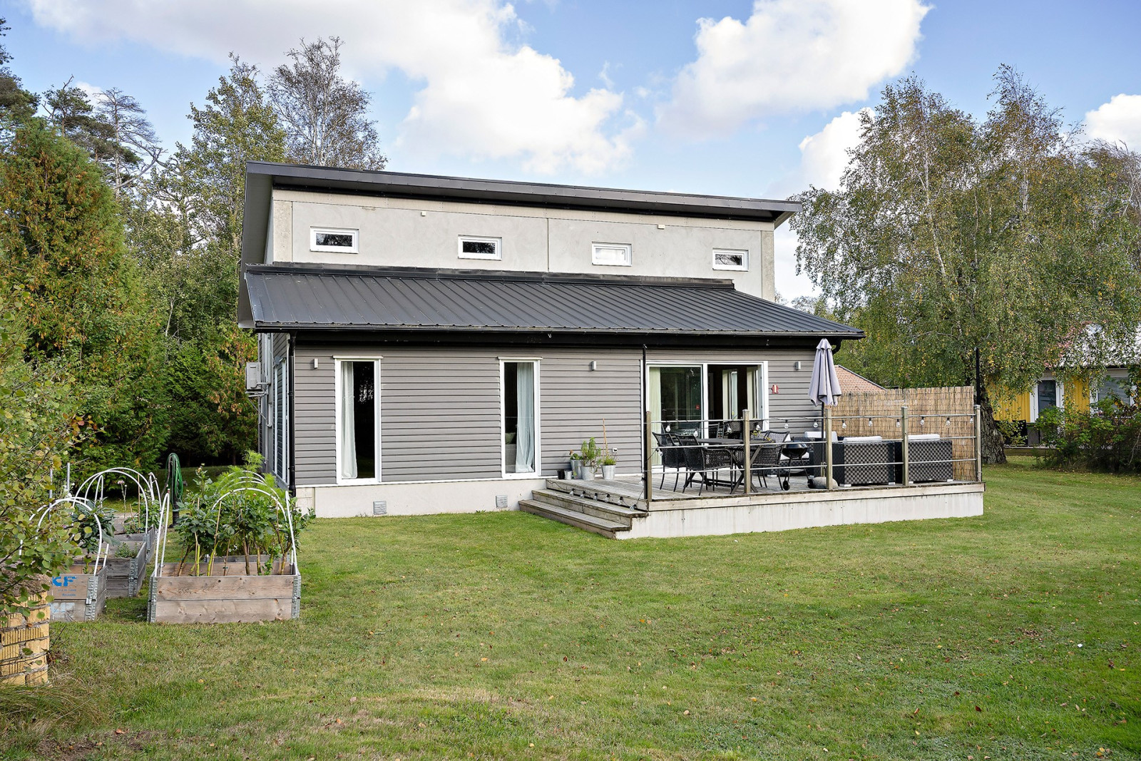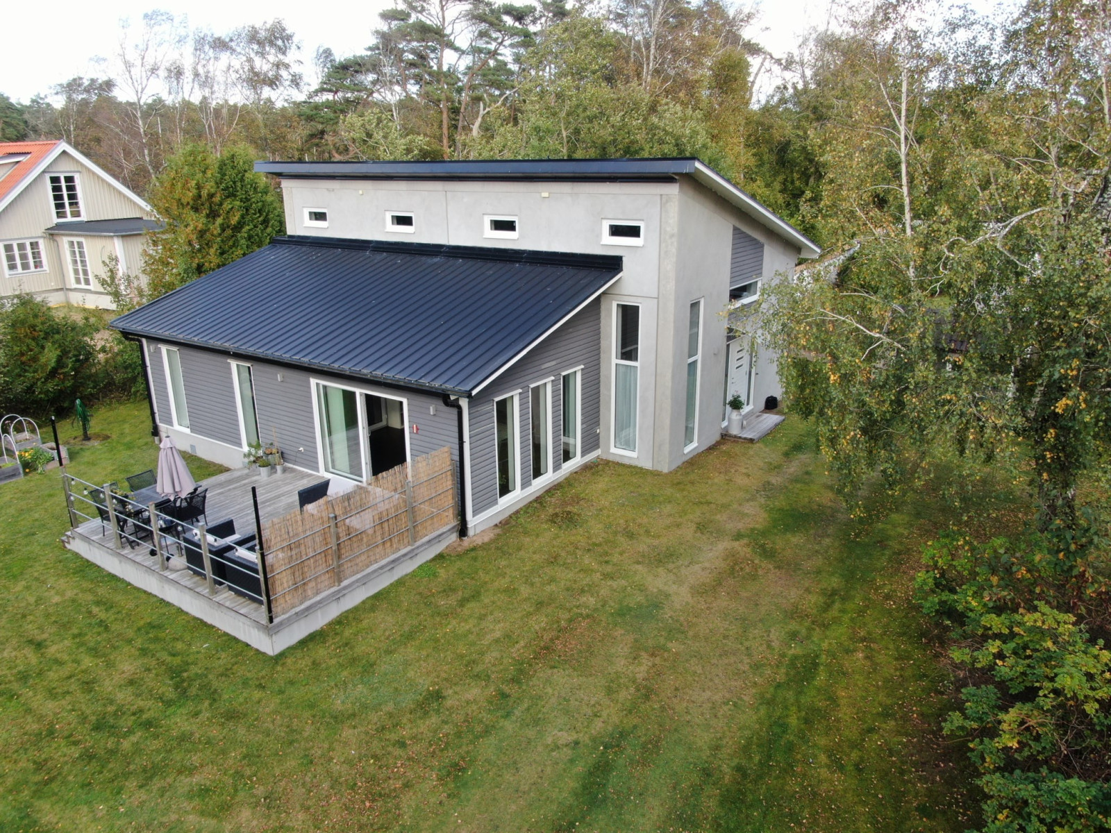 Byggnadstyp1-plansvilla med loftByggnadsår2015FasadBetongelementStommeBetongelementFönster3-glasBjälklagBetongTakPlåtGrundKrypgrundUppvärmningTvå Luft/luft-värmepumpar, golvvärme (el) i badrum och uterumVatten/avloppKommunalt vatten året om. Kommunalt avloppVentilationSjälvdragÖvriga byggnader/utrymmen-Gäststuga.