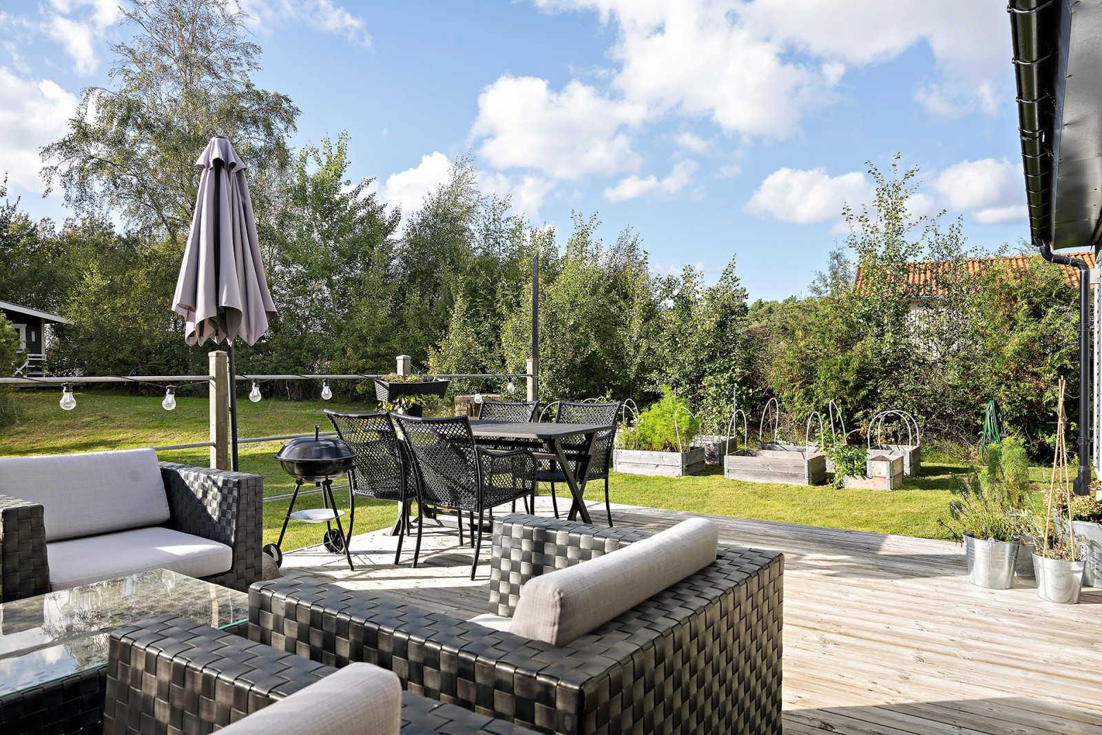 På denna generösa tomt om hela 1 889 kvadratmeter finner du en uppvuxen tomt av grönskande träd och växter. Här kan du skapa din egen gröna oas och utforma dina trädgårdsdrömmar.Uteplats/balkong