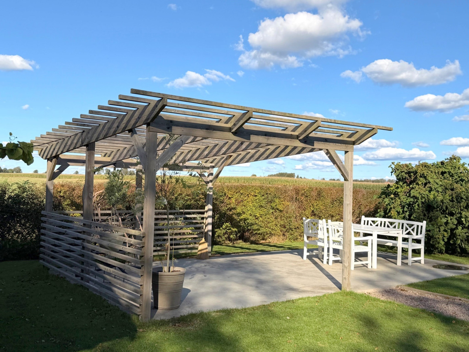 Gjuten uteplats med härlig utsikt.TV- och internetanslutning