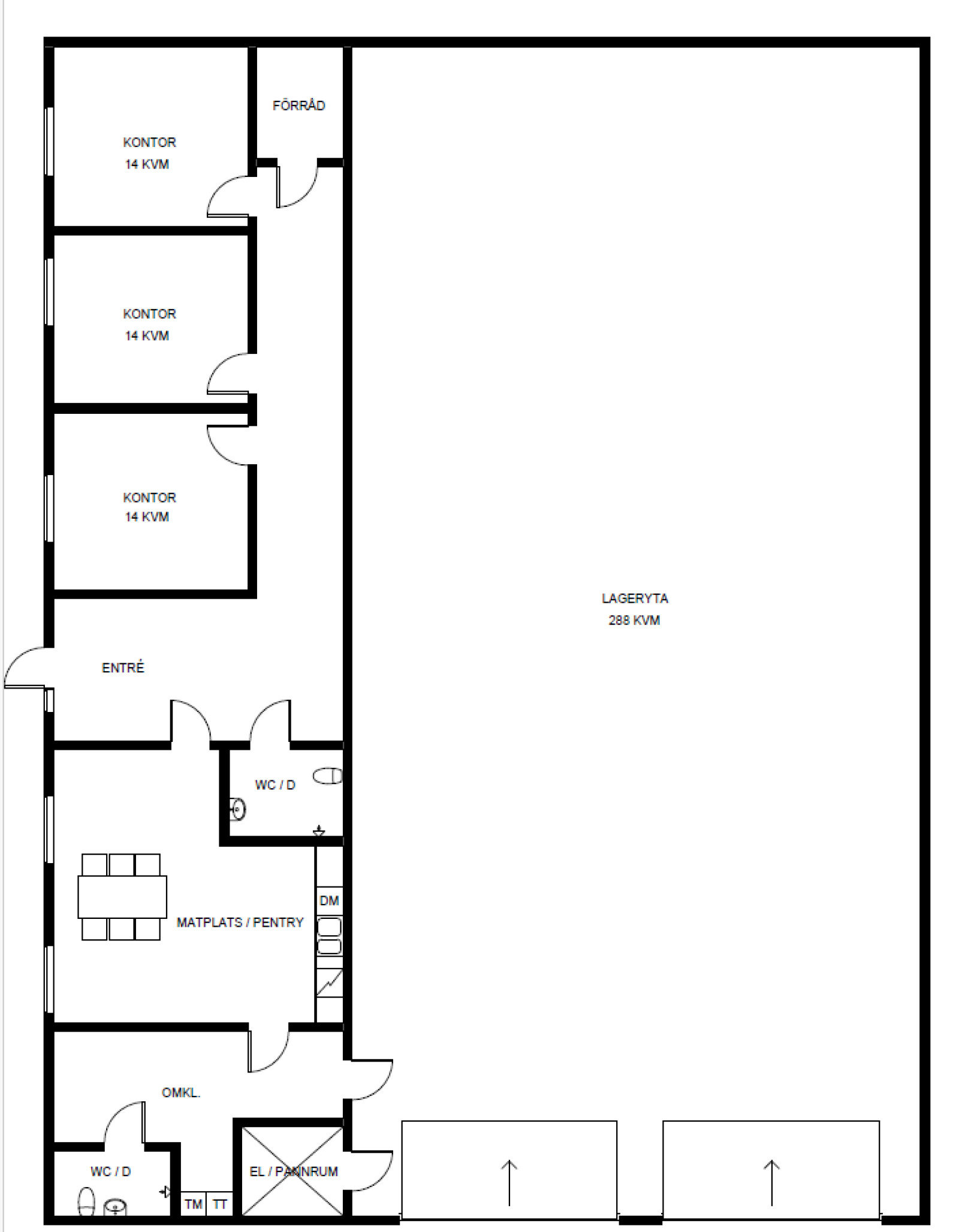 Maskinhall/lager, 288 kvm + 100 kvm entresol:
