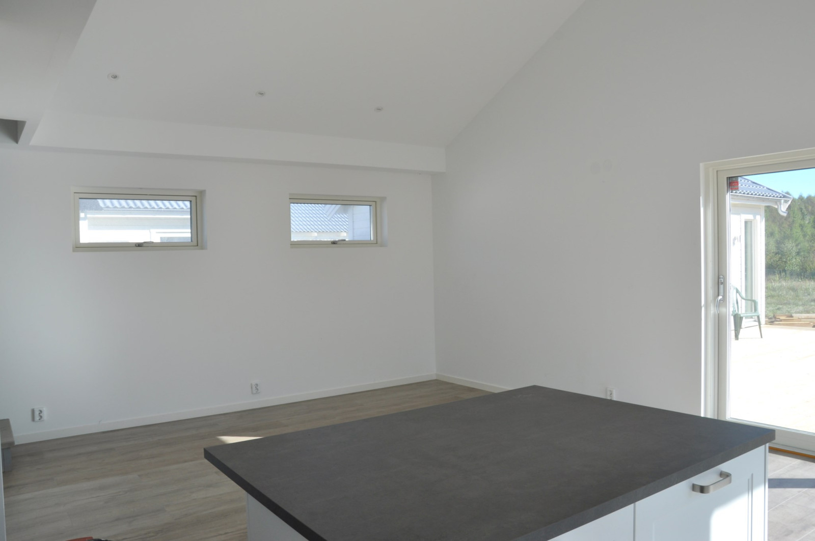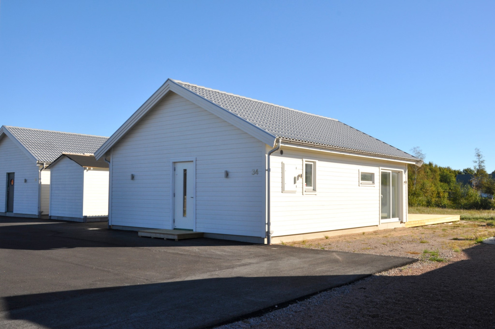 Modernt och nybyggt fritidshus eller mindre permanentboende. Bostaden är väl planerad med en klinkerbelagd hall. I anslutning till hallen finns ett sovrum på ena sidan samt tvättstuga på andra sidan. Här hittar man också det helkaklade badrummet med dusch. Vidare in i huset nås kök och sällskapsrum med öppen planlösning. I köksdelen finns en praktisk köksö för extra förvaring och arbetsyta. Här finns också stora skjutbara glaspartier ut mot det stora altandäcket. I sällskapsrummet finns också en trappa upp till ett praktiskt sovloft. Spotlights finns monterat i hela huset bortsett från sovrum.