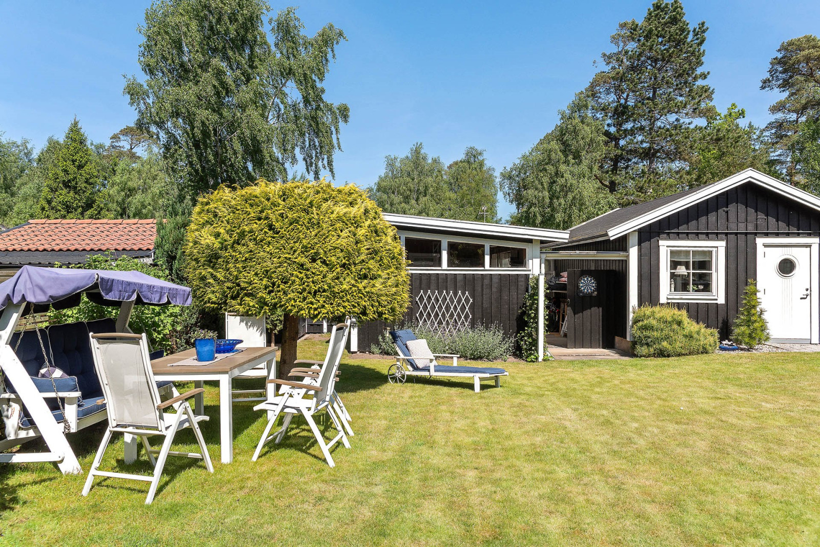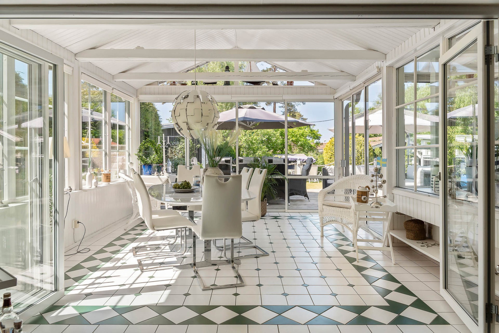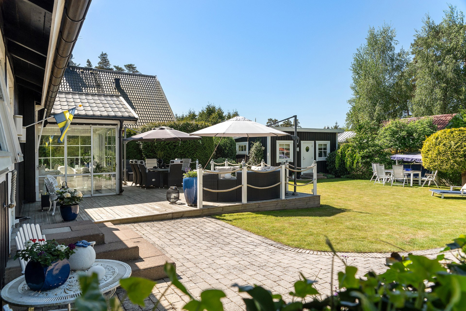 På perfekt läge på hörntomt i norra Mellbystrand hittar ni denna pärla som kan användas som både permanentboende eller fritidsboende. Här finns ett välskött ljust mysigt hus med mycket charm. Huset byggdes 1980 och byggdes sedan till 1988. Nuvarande ägare byggde 2002 ett fantastiskt inbjudande uterum om c:a 20 kvm. Rummet har ett fint klinkerbelagt golv med golvvärme och två öppningsbara glasskjutpartier mot den öppna altanen i vinkel. Utgång till uterummet sker via en stor glas-vikvägg från sällskapsrummet innanför. Vill man förlänga rummet öppnar man glas-vikdörrarna från 2017 helt och rummet går i ett med sällskapsrummet innanför. Det finns även en glasdörr i vikpartiet som man kan använda istället för att öppna upp rummet helt. När man befinner sig i uterummet får man känslan av att sitta ute i den underbara insynsskyddade trädgården som inramas av gröna häckar och buskar. I trädgården finns också de två välskötta gäststugorna med fyra sängplatser och badrum i båda två. Den ena av gäststugorna byggdes 2016 och inrymmer dessutom två rum. Väljer man att sitta ute under bar himmel kan man välja den öppna trallbelagda altanen, den stenlagda uteplatsen vid entrén eller bara njuta av det gröna gräset på den sköna trädgårdssidan.