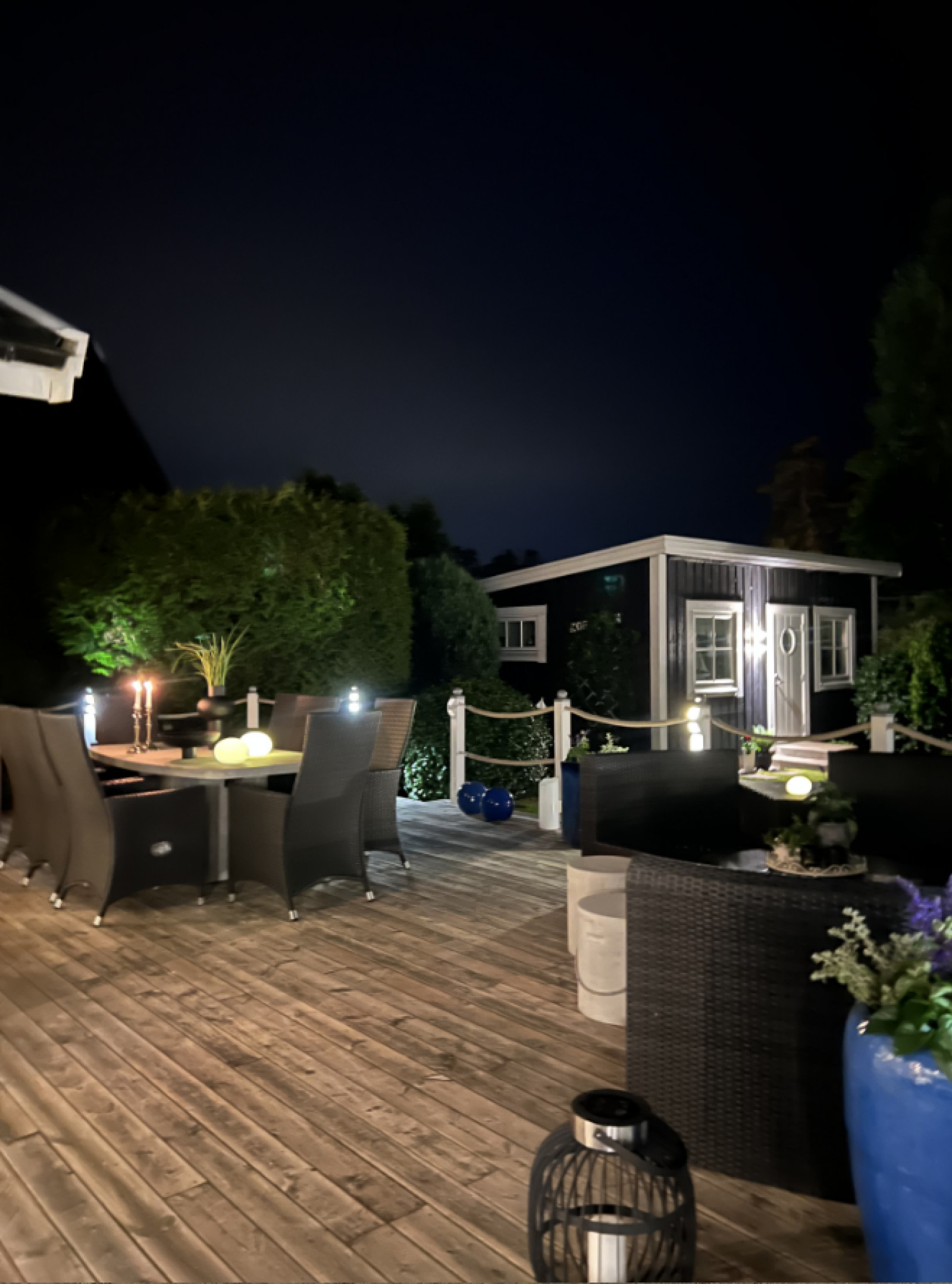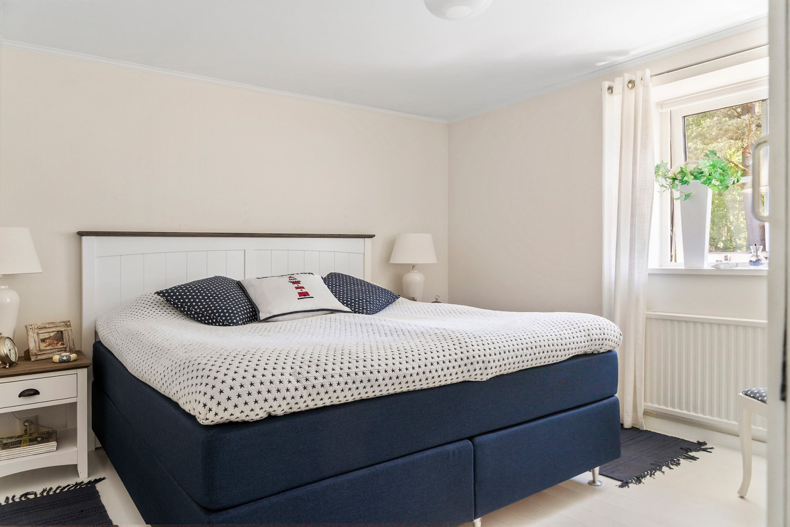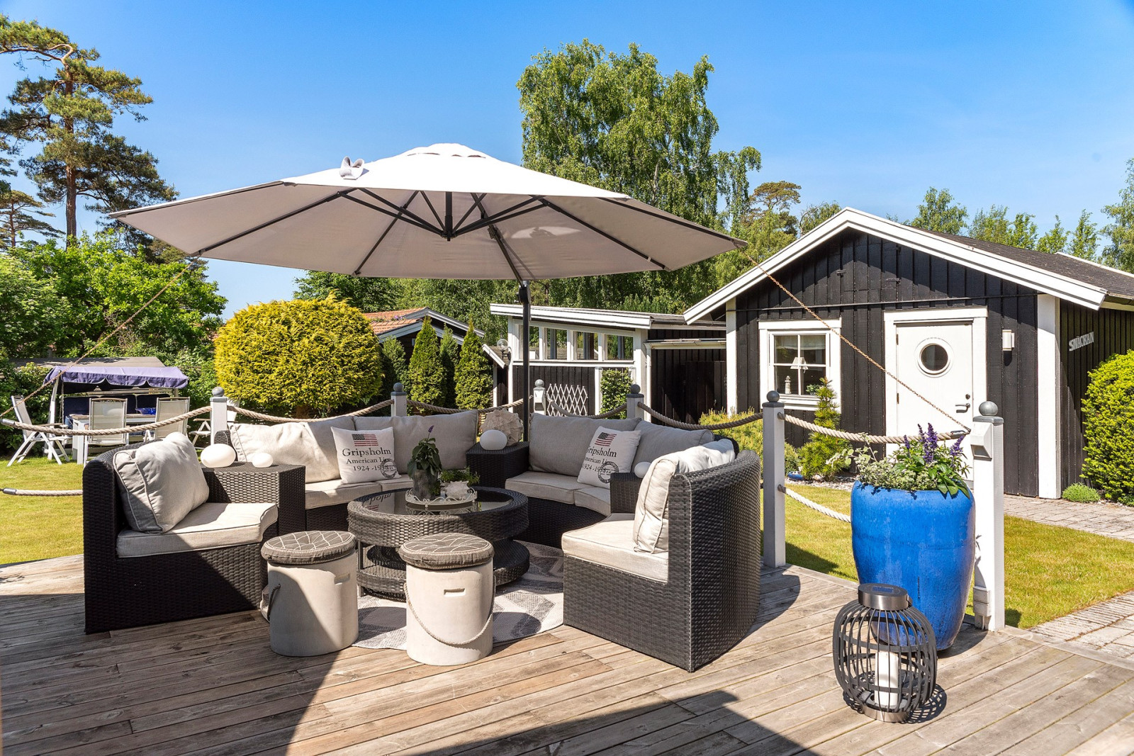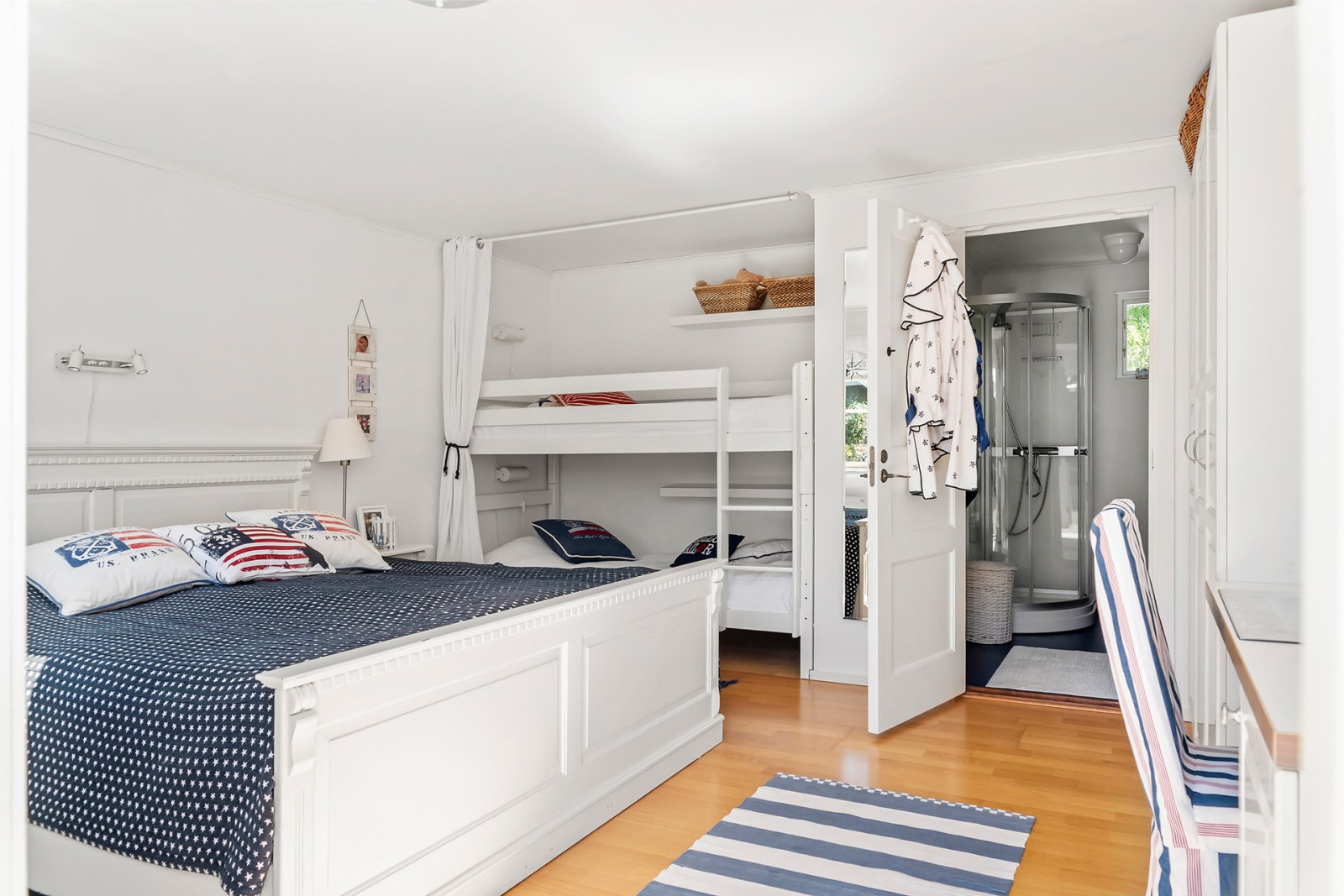 På perfekt läge på hörntomt i norra Mellbystrand hittar ni denna pärla som kan användas som både permanentboende eller fritidsboende. Här finns ett välskött ljust mysigt hus med mycket charm. Huset byggdes 1980 och byggdes sedan till 1988. Nuvarande ägare byggde 2002 ett fantastiskt inbjudande uterum om c:a 20 kvm. Rummet har ett fint klinkerbelagt golv med golvvärme och två öppningsbara glasskjutpartier mot den öppna altanen i vinkel. Utgång till uterummet sker via en stor glas-vikvägg från sällskapsrummet innanför. Vill man förlänga rummet öppnar man glas-vikdörrarna från 2017 helt och rummet går i ett med sällskapsrummet innanför. Det finns även en glasdörr i vikpartiet som man kan använda istället för att öppna upp rummet helt. När man befinner sig i uterummet får man känslan av att sitta ute i den underbara insynsskyddade trädgården som inramas av gröna häckar och buskar. I trädgården finns också de två välskötta gäststugorna med fyra sängplatser och badrum i båda två. Den ena av gäststugorna byggdes 2016 och inrymmer dessutom två rum. Väljer man att sitta ute under bar himmel kan man välja den öppna trallbelagda altanen, den stenlagda uteplatsen vid entrén eller bara njuta av det gröna gräset på den sköna trädgårdssidan.