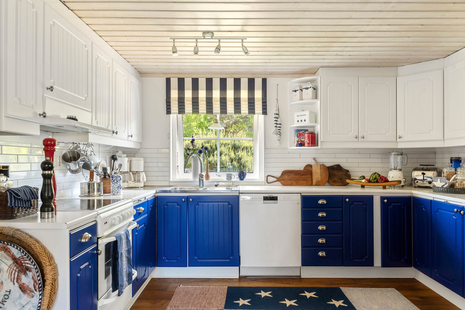 I hela huset (förutom i badrummet, entréhallen och sovrummen) ligger det ett nytt snyggt enstavigt ekparkettgolv, oak chateau, från 2020. I sovrummen ligger det charmiga vitmålade trägolv. Huset och gäststugorna har använts året om. När ägarna inte har varit där på vintern har de haft c:a 6-8 grader varmt i husen. Byggnaderna är förbesiktigade av Anticimex. Kontakta mäklaren för att ta del av protokolletKök