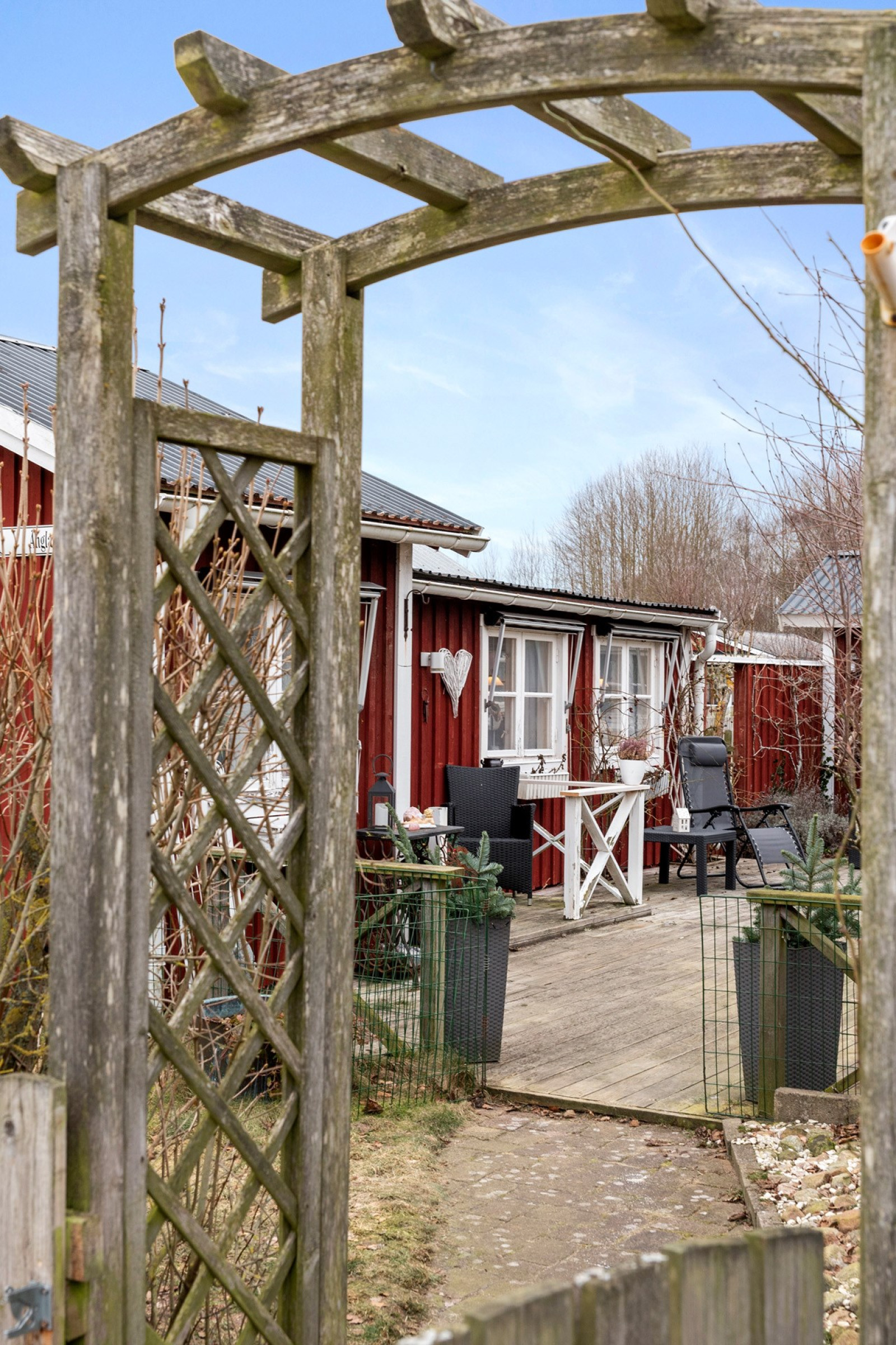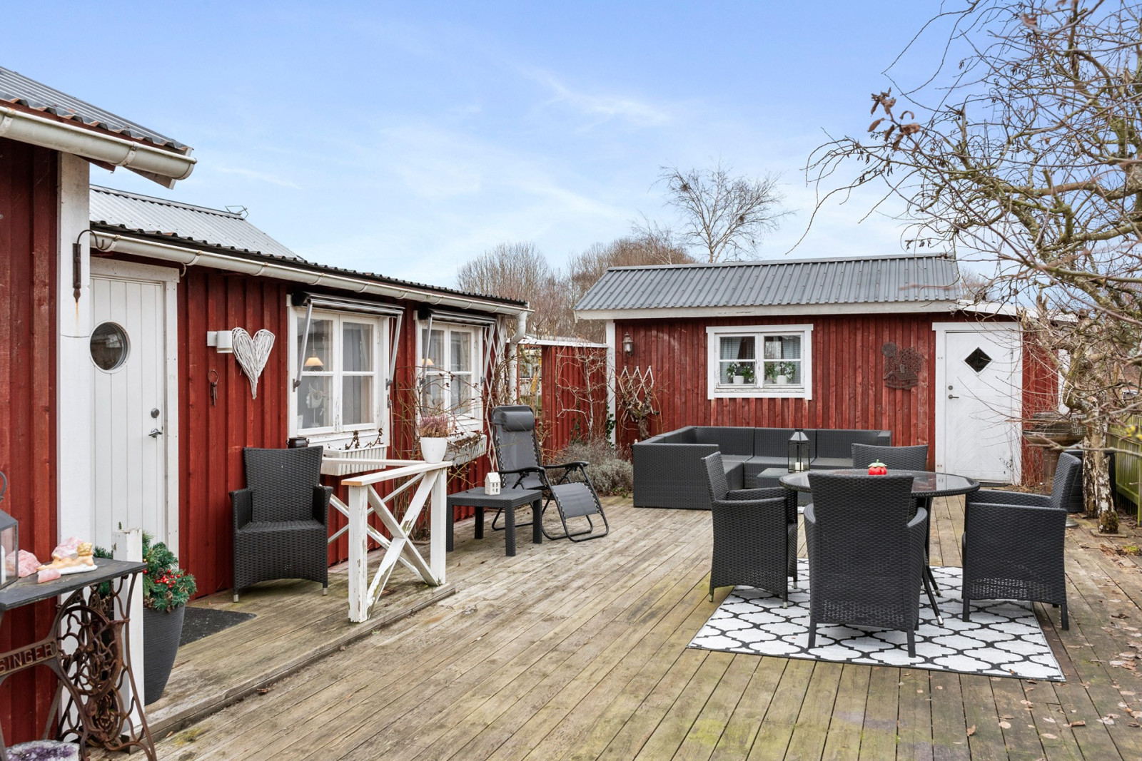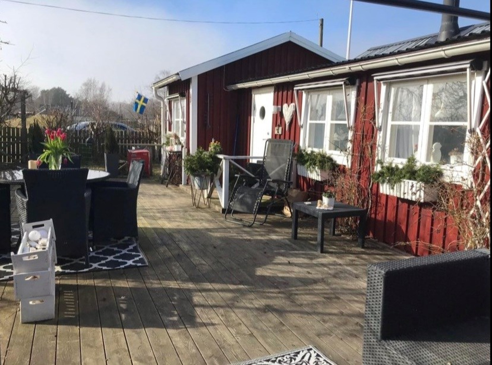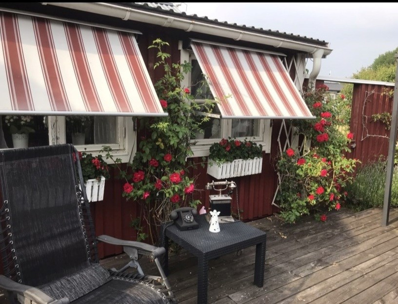 Stort och härligt altandäck i skyddat söderläge att njuta av den härliga utemiljön.TV- och internetanslutning