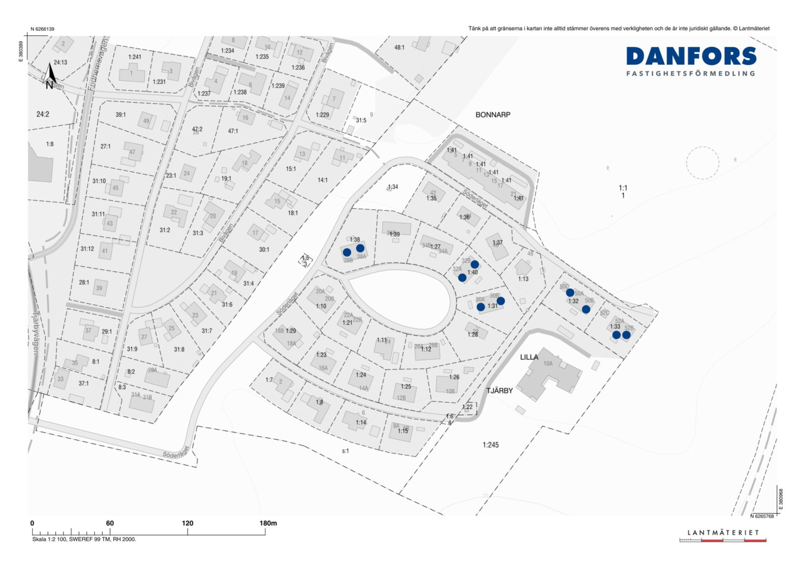 TypHyresfastighetUpplåtelseformFriköptFast.beteckningBonnarp 1:31, 1:32, 1:33, 1:38 och 1:40AdressSöderläget 30A-B, 32A-B, 38A-B, 50A-B och 52A-BPostadress31235 LaholmOmrådeL:a TjärbyKommunLaholmTomtarea5 933 m²Pris22 900 000 krSammanställning areor