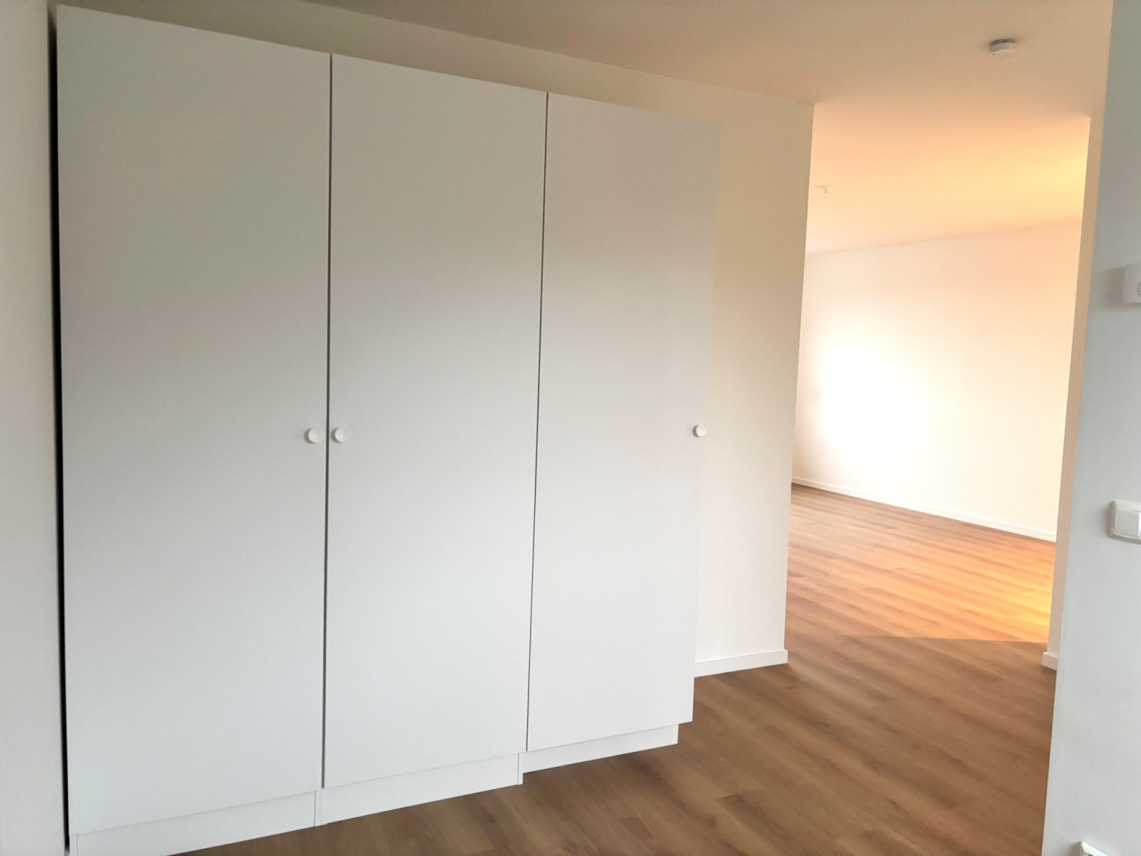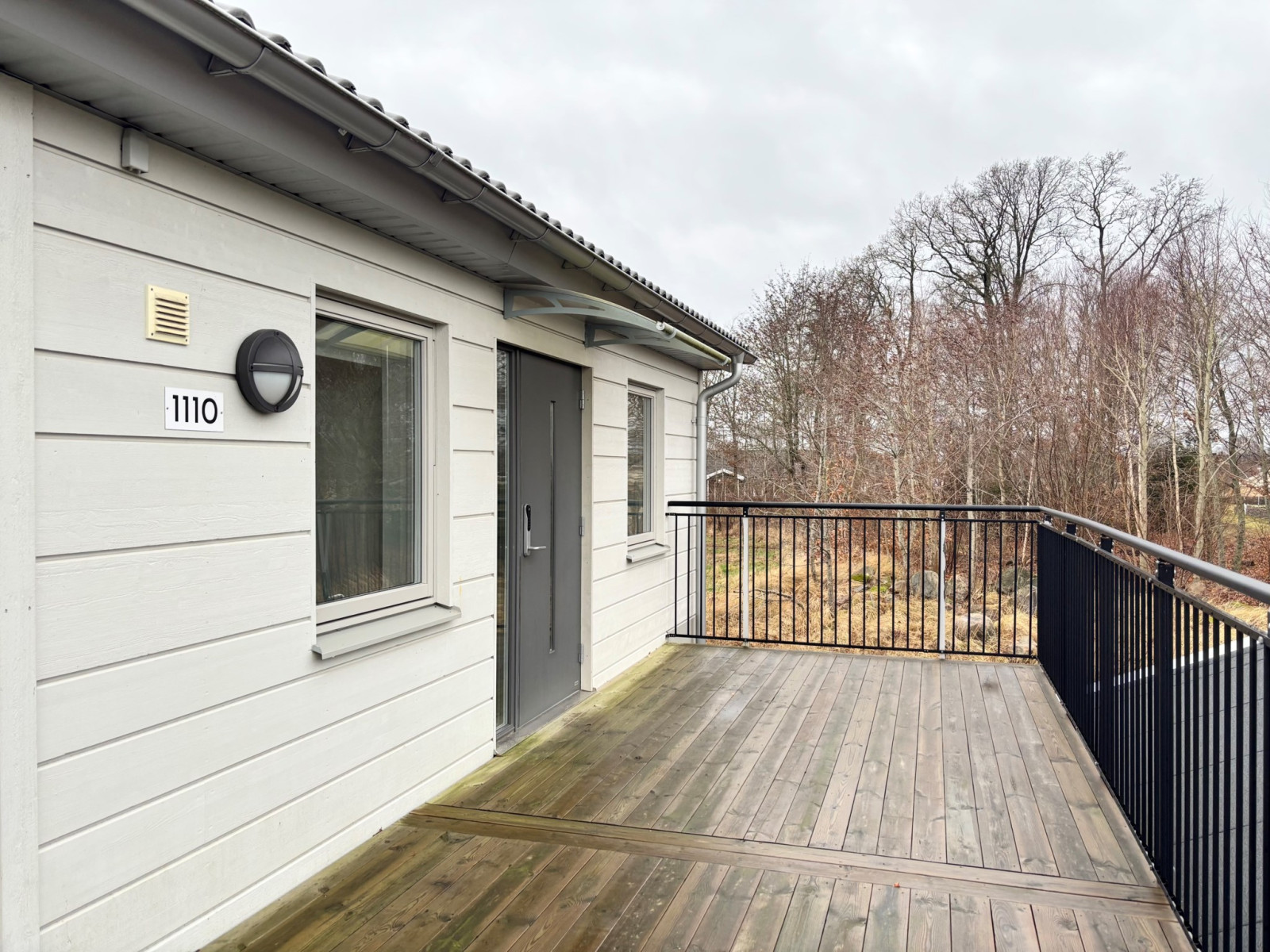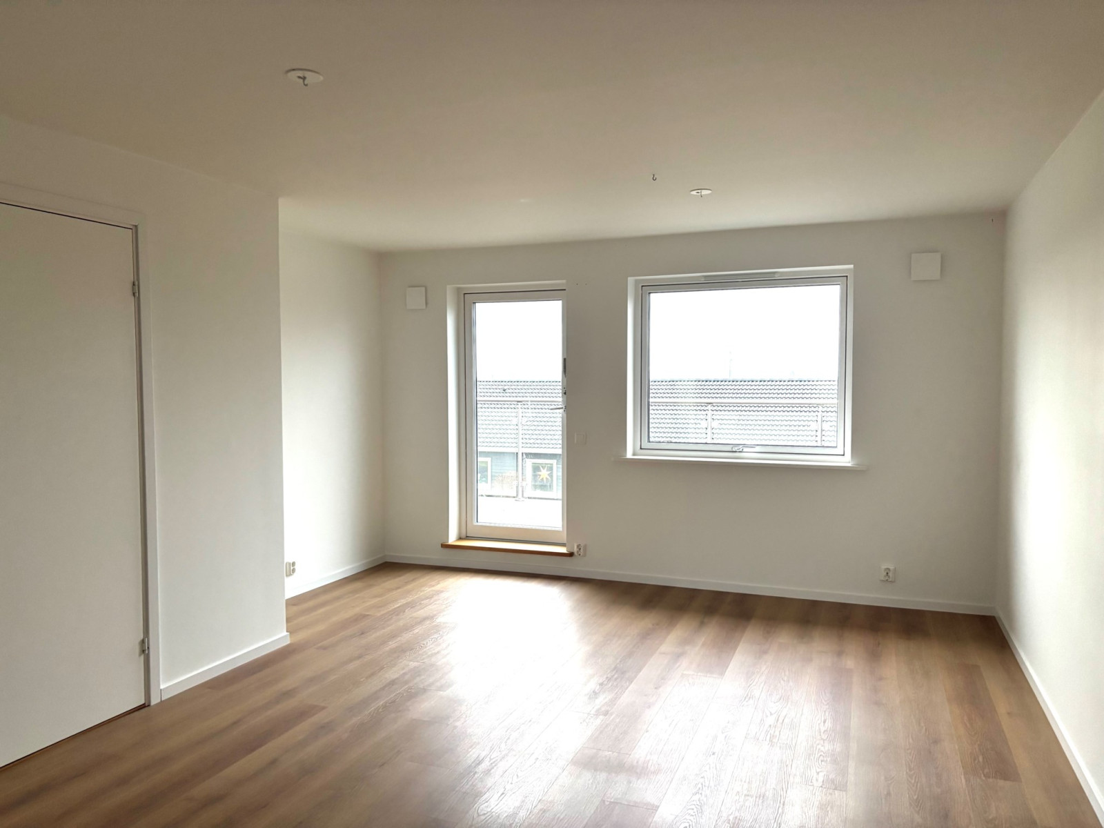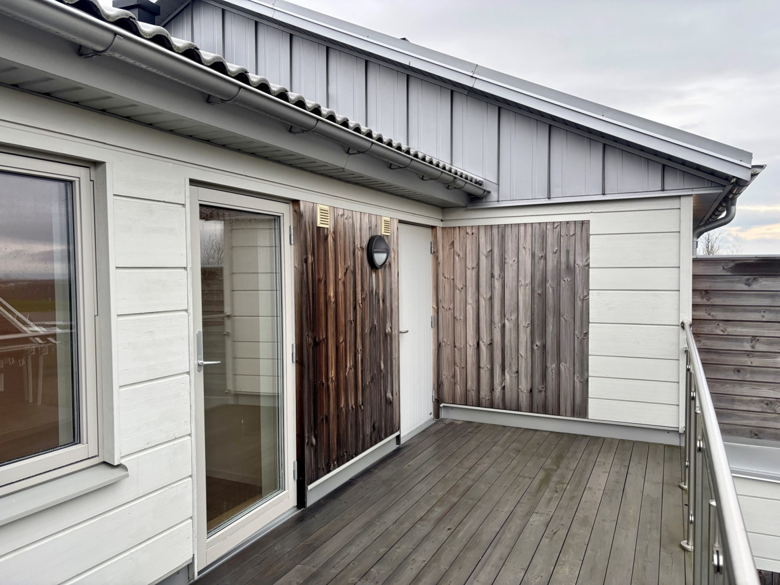Lägenheten, uppförd 2021, har moderna materialval, genomgående parkettgolv och är luftig med vitmålade väggar. Med privat läge i hörnet av loftgången på andra våningen får lägenheten en liten unik "uteplats" med morgonsol.