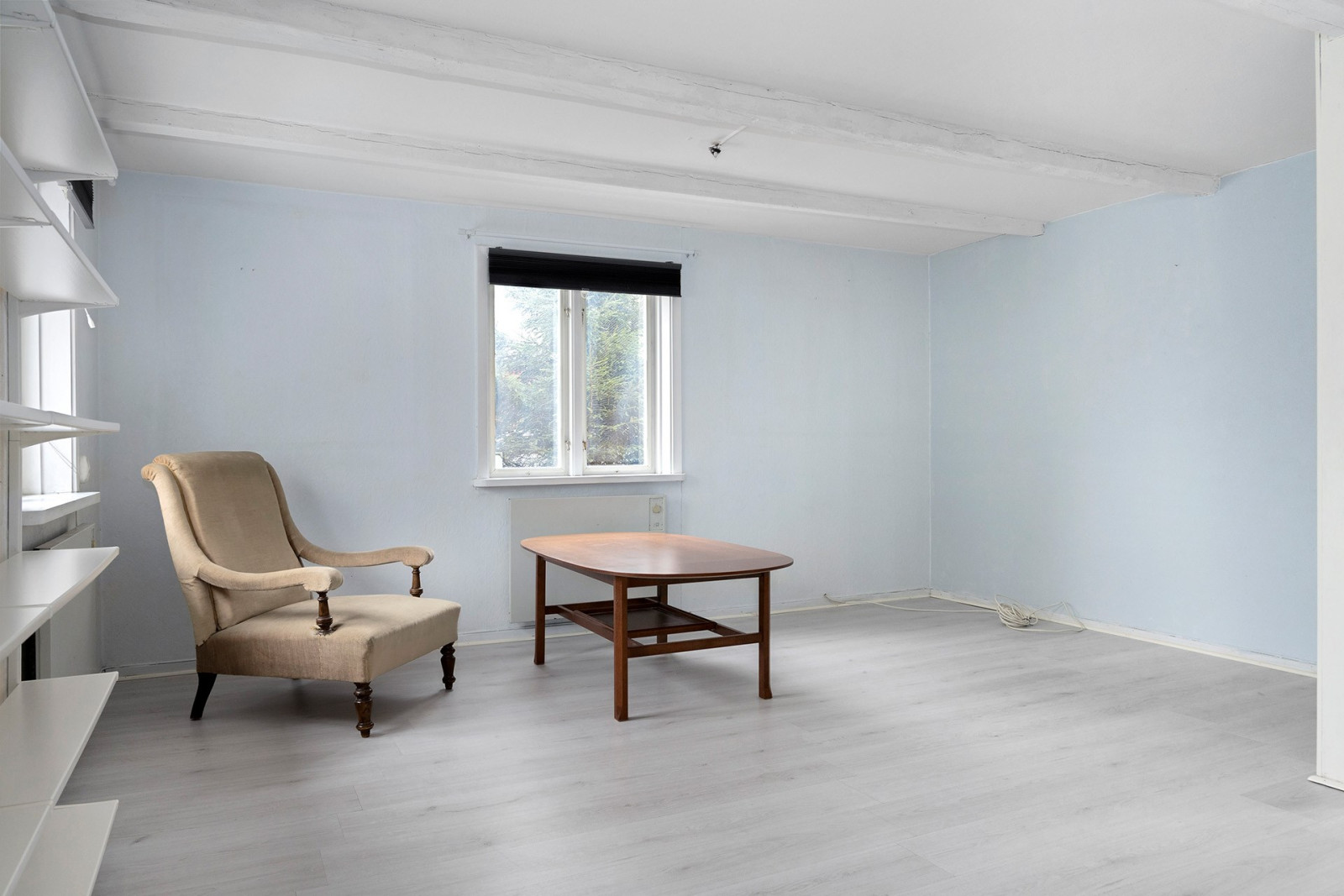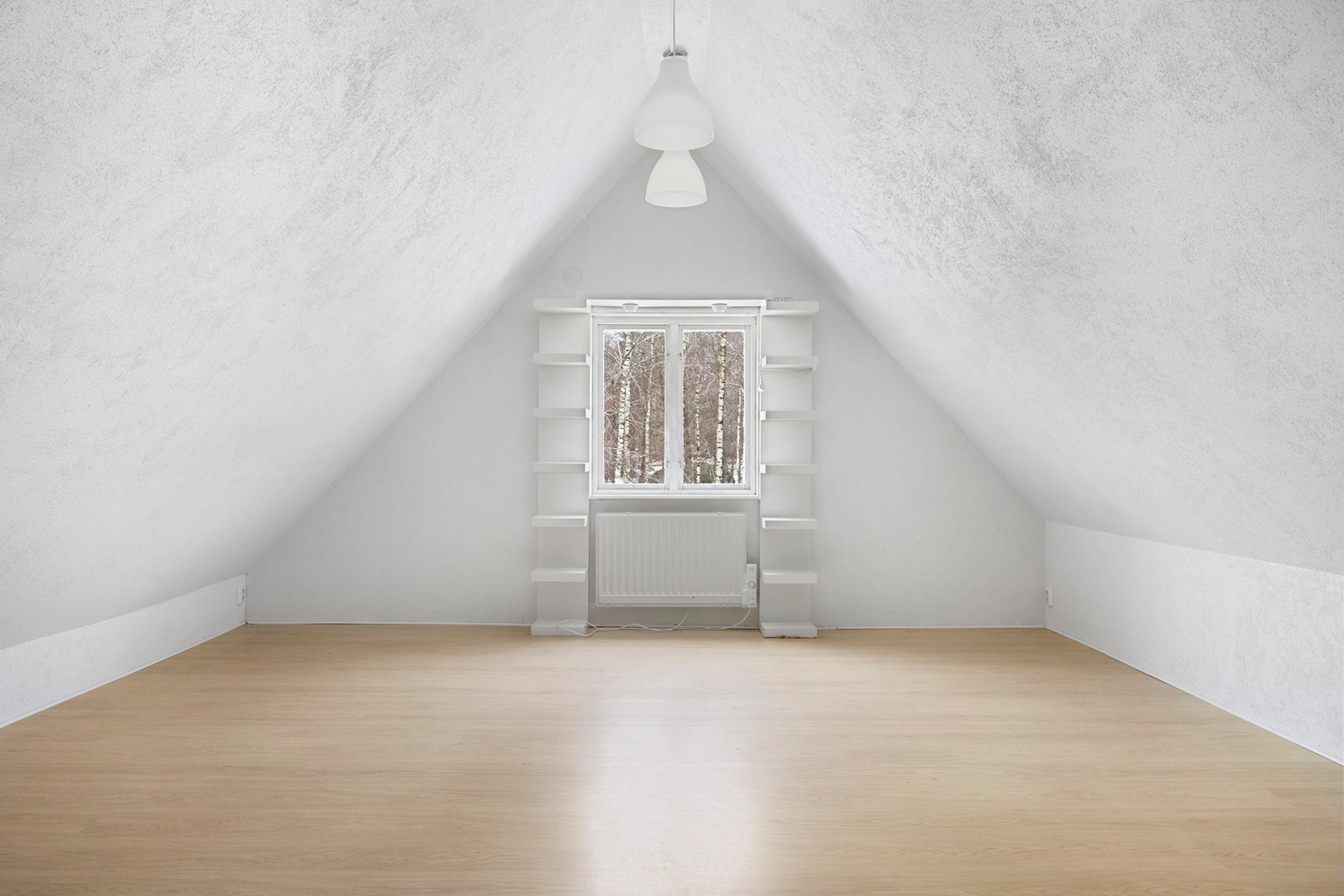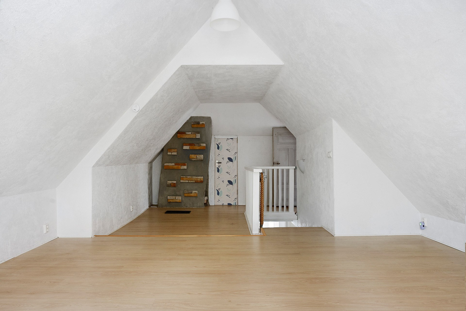 Härligt rum med öppet upp till nock. Detta rum kan både nyttjas som sällskapsrum alternativt sovrum. I förlängningen av rummet finns ingången till den oinredda vinden. Fönster åt norr.