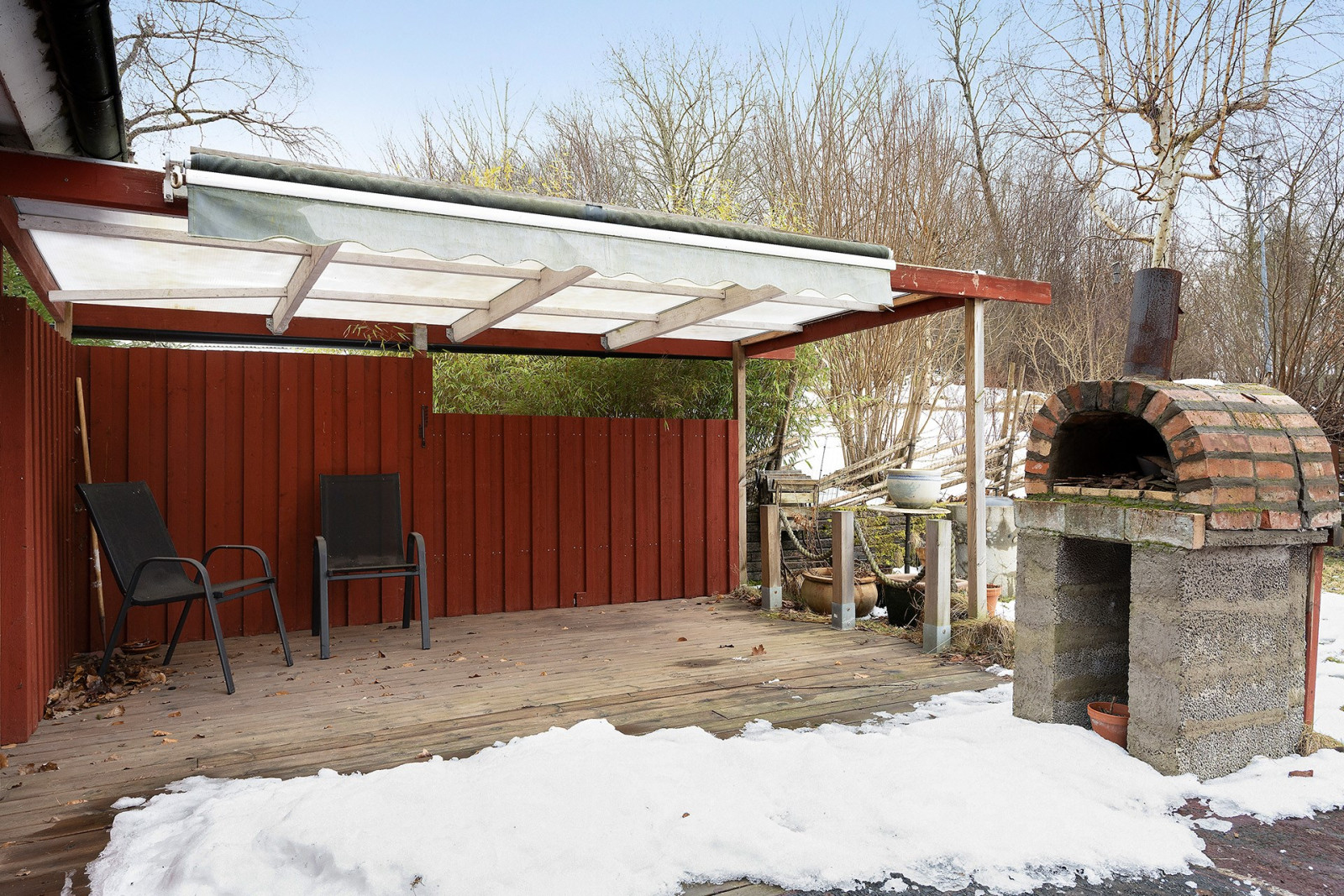 Härligt altandäck med anslutande överbyggd del. Insynsskyddat läge.Bilplats